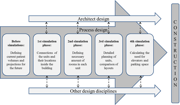 Miten toimintaprosessit simuloidaan ja validoidaan, kun suunnitellaan uusia terveydenhuollon tiloja?